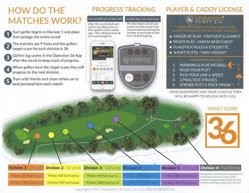 Our goals with this program revolve around the same progress-based graduated-play method we have used since the academy was created over 30 years ago but in a new and intuitive way using today’s technology. The program is designed to achieve the goal of shooting 36 or under for 9-holes to advance to the next length of course of 6 ranks of curriculum with 12 skills to master giving students 72 goals to work through and achieve. As the students get to the course they have 6 sets of tees set and shorter to longer lengths on the course to keep working at their goals and shot 36 to move up the ranks to the next distance as they improve and grow. The program shows 5 different goal tracks to show players and parents their progress path both during the Academy period, as well as throughout the entire year as they grow and master their games!